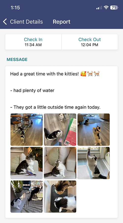 In most cases, you will have the same sitter throughout your entire booking, but due to availability, the booking may be shared between two Purr City sitters. You will be notified ahead of time with an opportunity to meet both sitters if it helps you feel at ease.